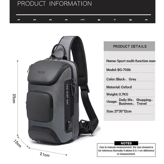 BANGE Anti-theft New Multifunction Crossbody Bag for Men Shoulder Messenger Bags Male Waterproof Short Trip Chest Bag Pack