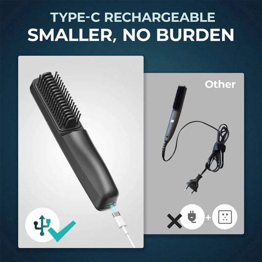 RESUXI Portable Hot Air Comb Rechargable Professional Hair Dryer 2in1 Hair Straightener and Curler Brush Dryer brush Hair styler